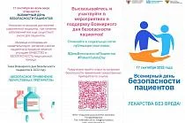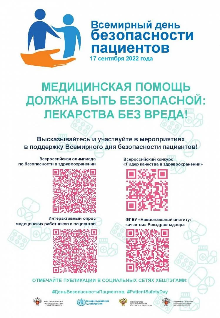 Тема Всемирного дня безопасности пациентов - 2022 сформулирована как «Безопасное применение лекарственных препаратов», а его лозунг – как «Лекарства без вреда».