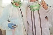 В течение всей пандемии коронавируса старшая медсестра занималась организацией оказания помощи прикрепленному населению в непростых эпидемических условиях, трудилась в «красной» зоне в полной экипировке – комбинезоне, респираторе, с защитным экраном и т.д. (на фото – справа)