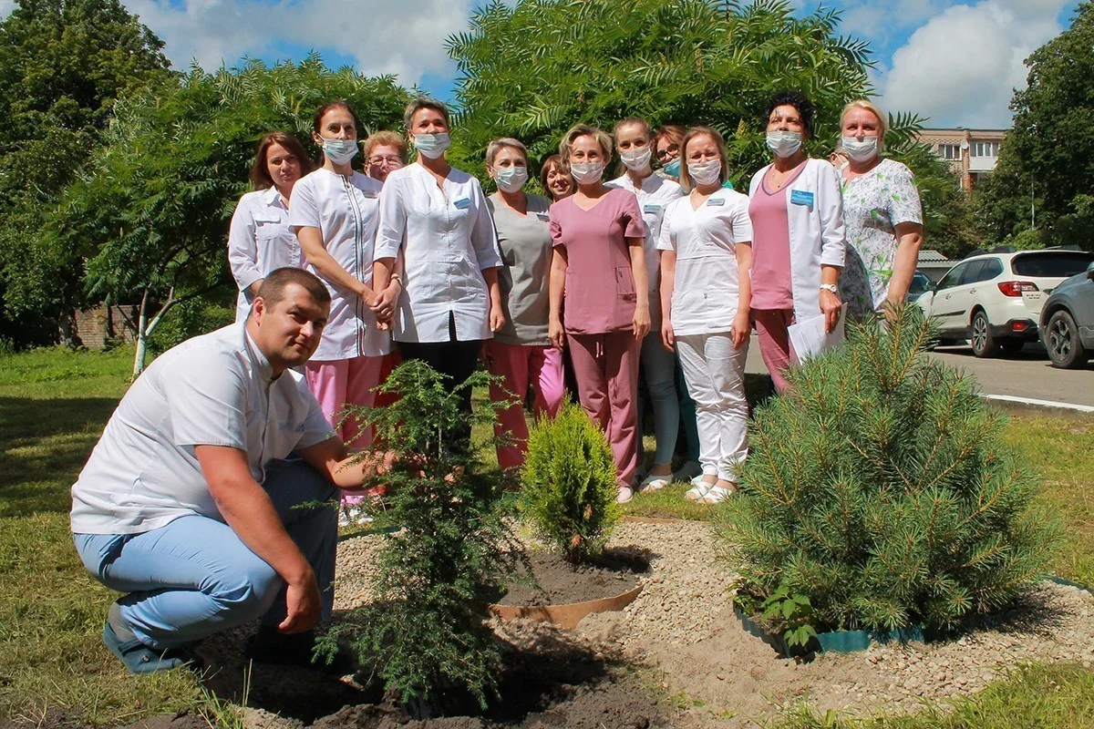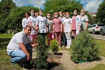 В первую годовщину после открытия центра в парковой зоне высадили молодую сосну. И сегодня традиция продолжается: здесь снова высадили уже третье хвойное дерево. На этот раз двор центра украсила вечнозеленая канадская тсуга.
