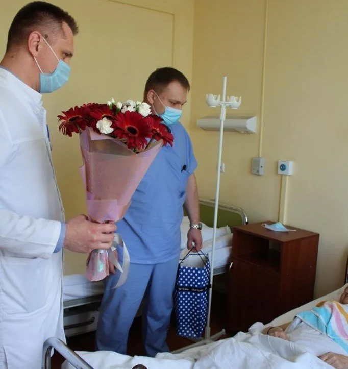 В преддверии 9 Мая в медицинских организациях региона поздравляли с праздником не только сотрудников, но и пациентов. Так, в областной больнице специалисты сосудистого центра поставили новый кардиостимулятор 93-летнему ветерану войны. После проведения операции от имени руководства и всего коллектива учреждения с предстоящим праздником пациентку поздравили заместитель главного врача по терапии Денис Кобер и заведующий региональным сосудистым центром Денис Болховской.