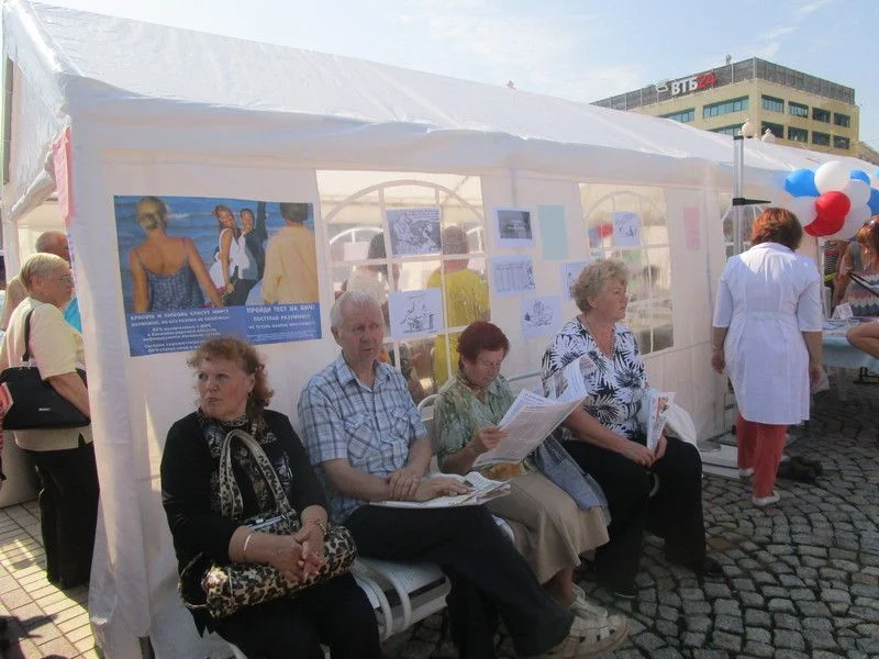 Для всех желающих работали четыре павильона, в которых проходили обследования граждан и прием врачей-специалистов, а также четыре мобильных комплекса – центр здоровья Областного центра медицинской профилактики и реабилитации, передвижной флюорограф Советского противотуберкулезного диспансера, детский стоматологический комплекс Городской детской стоматологической поликлиники и передвижной центр Областной станции переливания крови. «Люди начали подходить уже с восьми часов утра, хотя работа была анонсирована с десяти, - рассказала начальник департамента охраны здоровья регионального минздрава Оксана Черенкова. – Наши врачи не стали ждать и пригласили граждан на прием, в то время как еще монтировались павильоны».