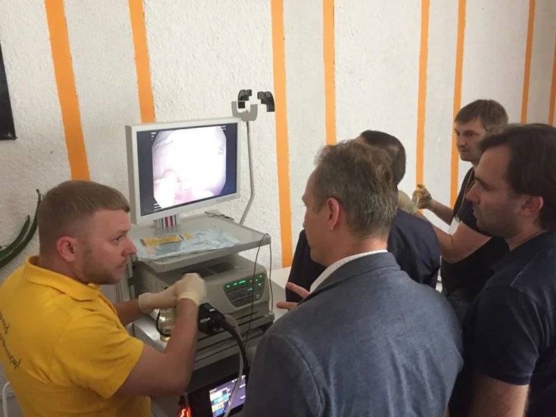 В практических занятиях по диагностической и оперативной эндоскопии, организованных областным министерством здравоохранения в конференц-зале Центральной городской клинической больницы, приняли участие более сорока врачей-эндоскопистов со всего региона.